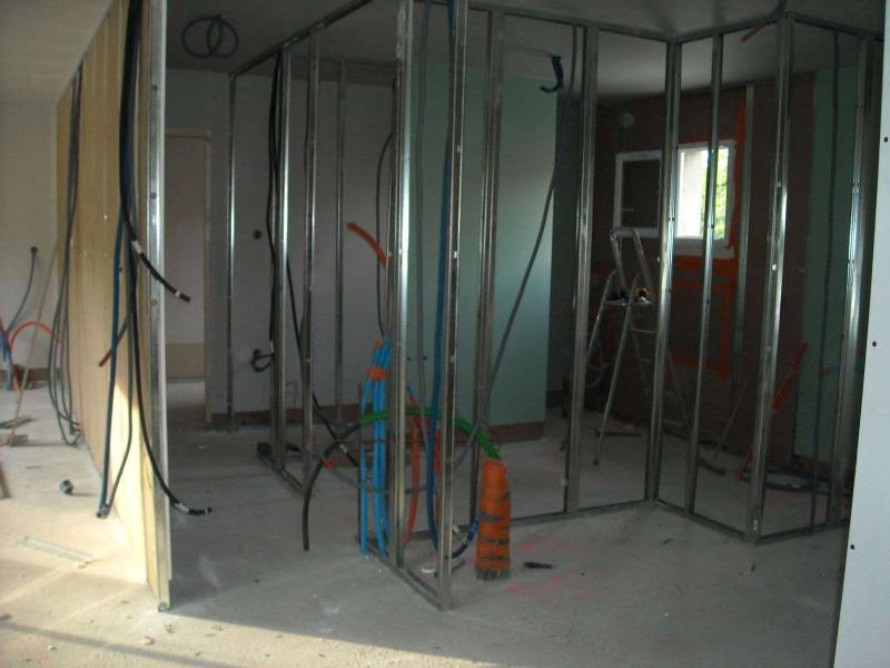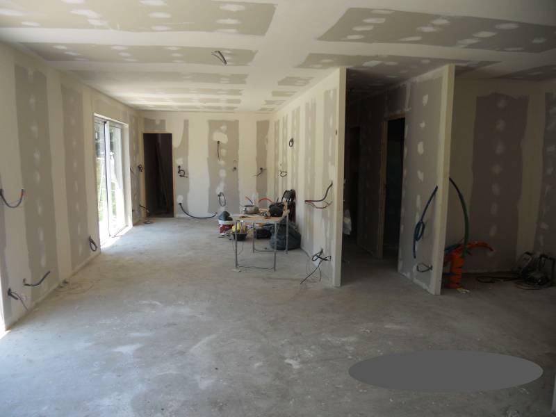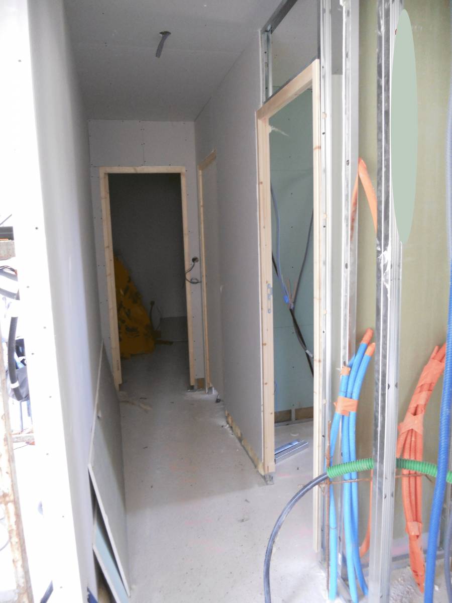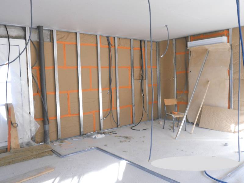 Ici pour une maison neuve située à proximité de Pont Audemer dans le département de l'Eure, la pose de cloison en Placostil vous permet un confort de vie de part une meilleure isolation de façade (avec la double isolation) et une isolation phonique et thermique entre les différentes pièces.