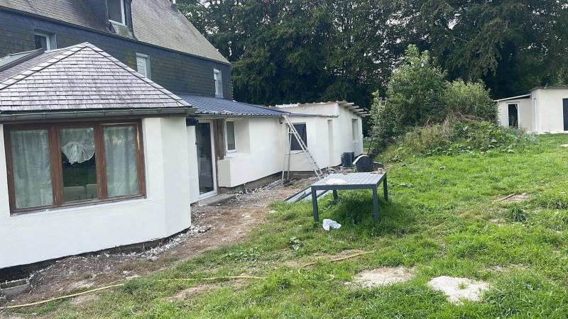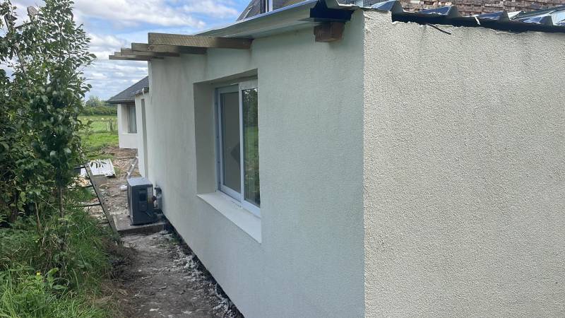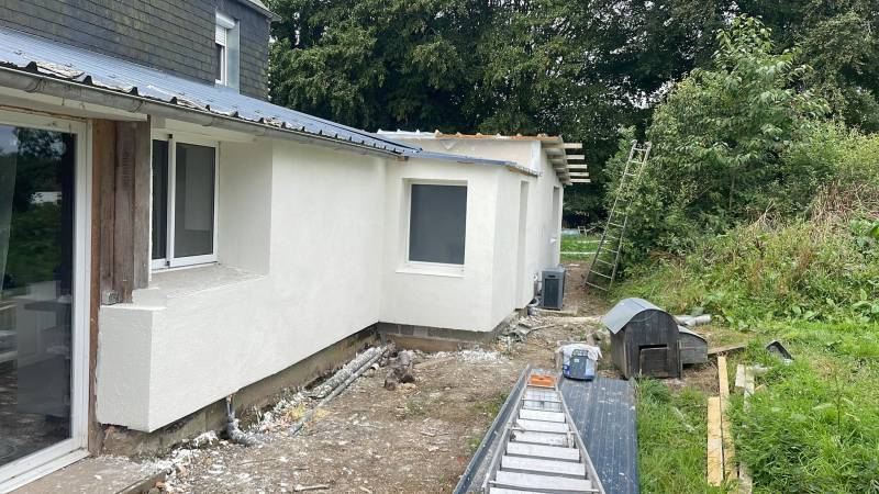 Le projet consistait à améliorer l'efficacité énergétique d'une extension de maison avec un bâtiment piscine. Nous avons opté pour la pose d'un isolant thermique par extérieur, une solution efficace pour réduire les pertes de chaleur, améliorer le confort intérieur et réaliser des économies d'énergie substantielles. Cette démarche contribue également à la préservation de l'environnement en réduisant l'empreinte carbone du bâtiment.