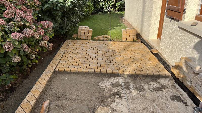 Pour enfin posé de nouveau pavés sur chape (coloris choisi par le client)