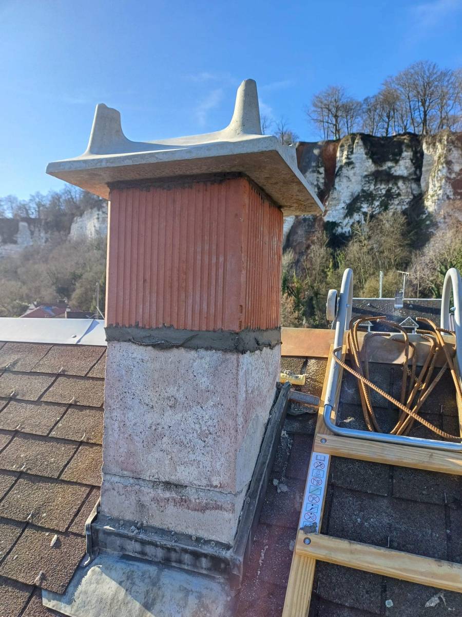 LS'G Bâti, votre partenaire de confiance en travaux de rénovation, a récemment été sollicitée pour une mission de reconstitution d'une cheminée dégradée à Tancarville, suite à une tempête de vent dévastatrice.