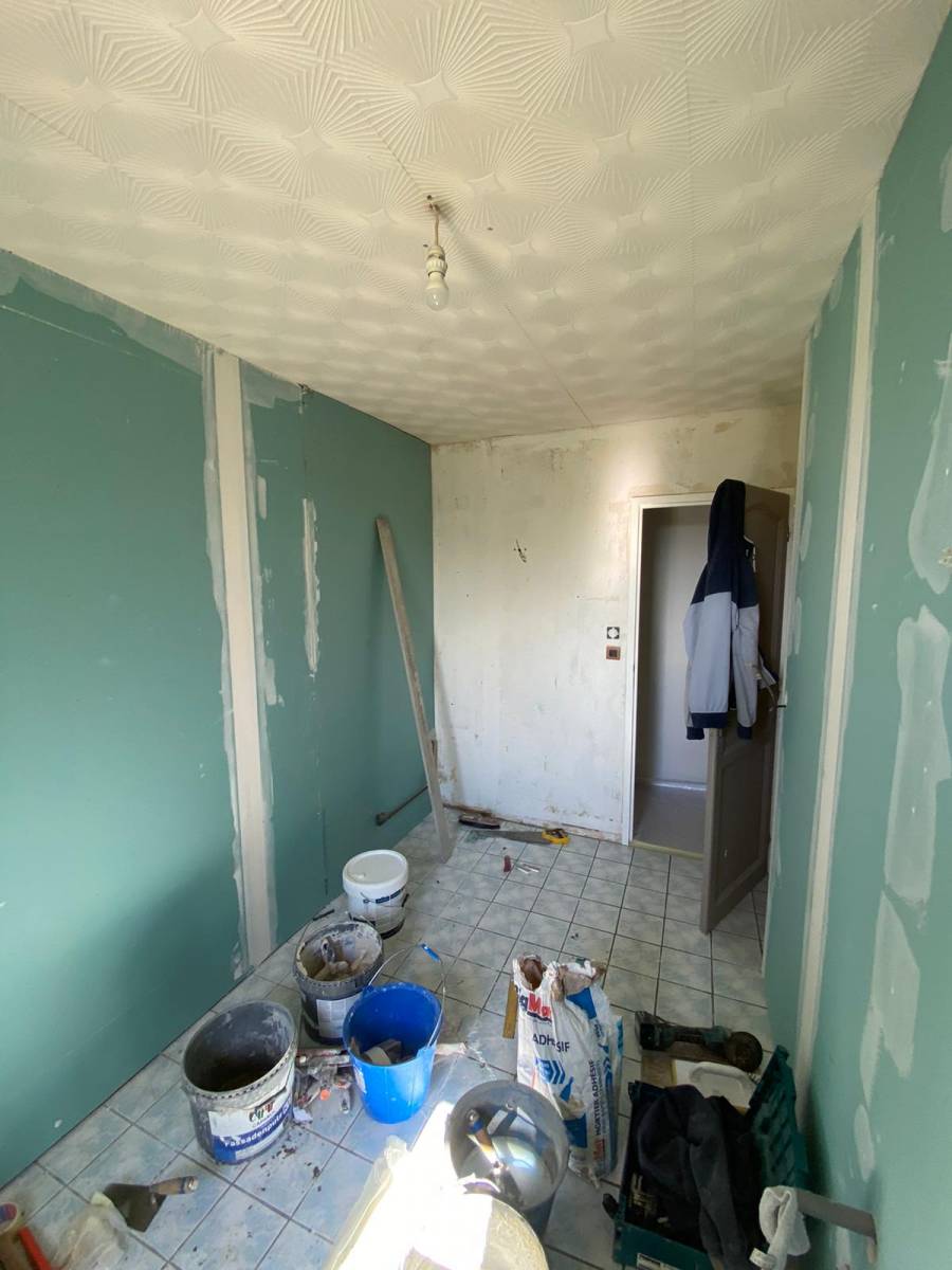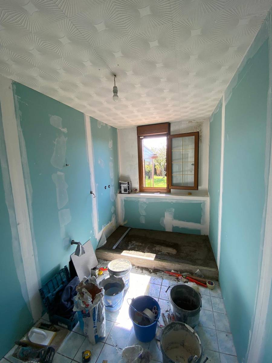Le projet a débuté par la pose de placo et d’un enduit, une étape essentielle pour garantir des murs lisses et prêts à recevoir les finitions. Nos artisans ont assuré une application soignée pour une base durable et esthétique.