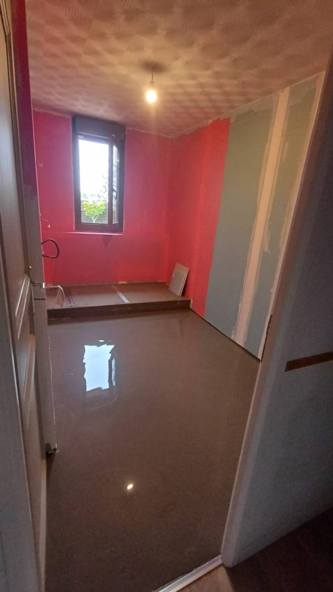 Pour préparer le sol, nous avons procédé à un ragréage minutieux, créant une surface parfaitement plane et stable. Cela a permis une pose optimale du carrelage, assurant une finition impeccable.