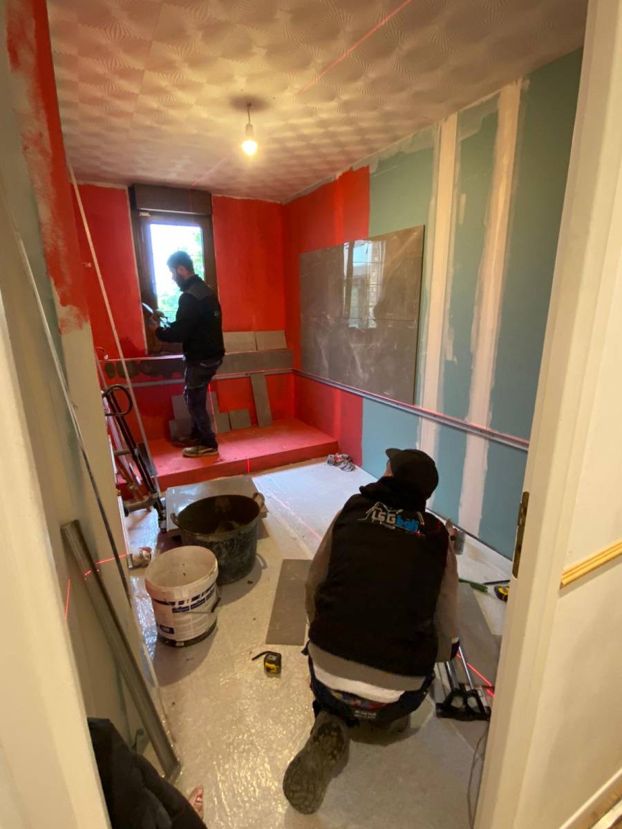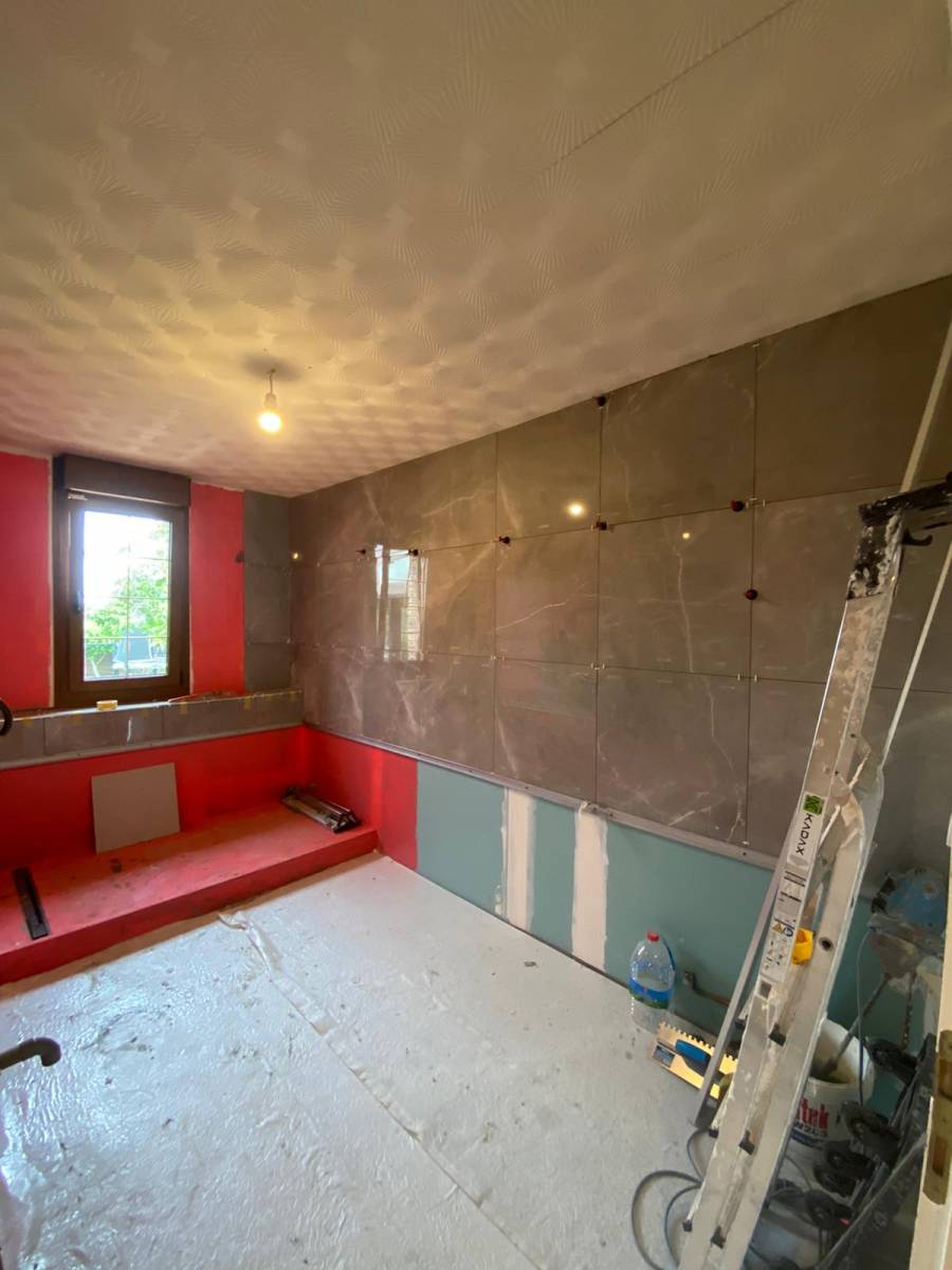 Le choix du client s'est porté sur un carrelage et d’une faïence gris poli, apportant une touche moderne et élégante à la salle de bain. La pose a été réalisée avec une grande précision, garantissant des alignements parfaits et un rendu esthétique irréprochable.